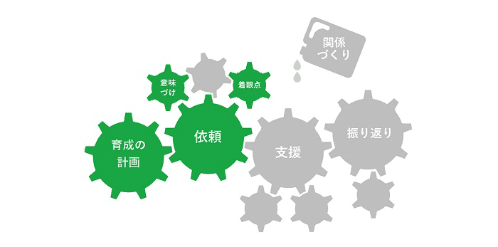 前後の行程で関わる人への影響範囲を伝えて「視野」を広げ、その関係者がどう感じて、どう考えているかを問うことで「視座」を変えるなど、作業のやり方ではなく、仕事の考え方を意識するように働きかけましょう。